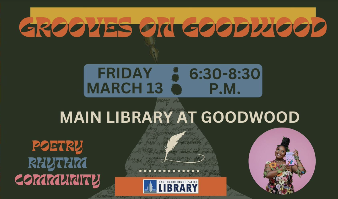 As part of our One Book One Community series focus on poetry and community connection, the Library proudly presents Tarriona “Tank” Ball, lyrical and spoken word artist, to the Main Library at Goodwood on Friday, March 13, 6:30-8:30 p.m. Tank is part of the New Orleans-based musical group Tank and the Bangas, who have released studio albums, Thinktank, Tarriona “Tank” Ball Green Balloon, and Red Balloon, a well as receiving a nomination for Best New Artist at the 2020 Grammy Awards and winning their first Grammy in 2024 in the Best Spoken Word Poetry Album category with their 2024 album, The Heart, the Mind, the Soul. This program is free to the public.