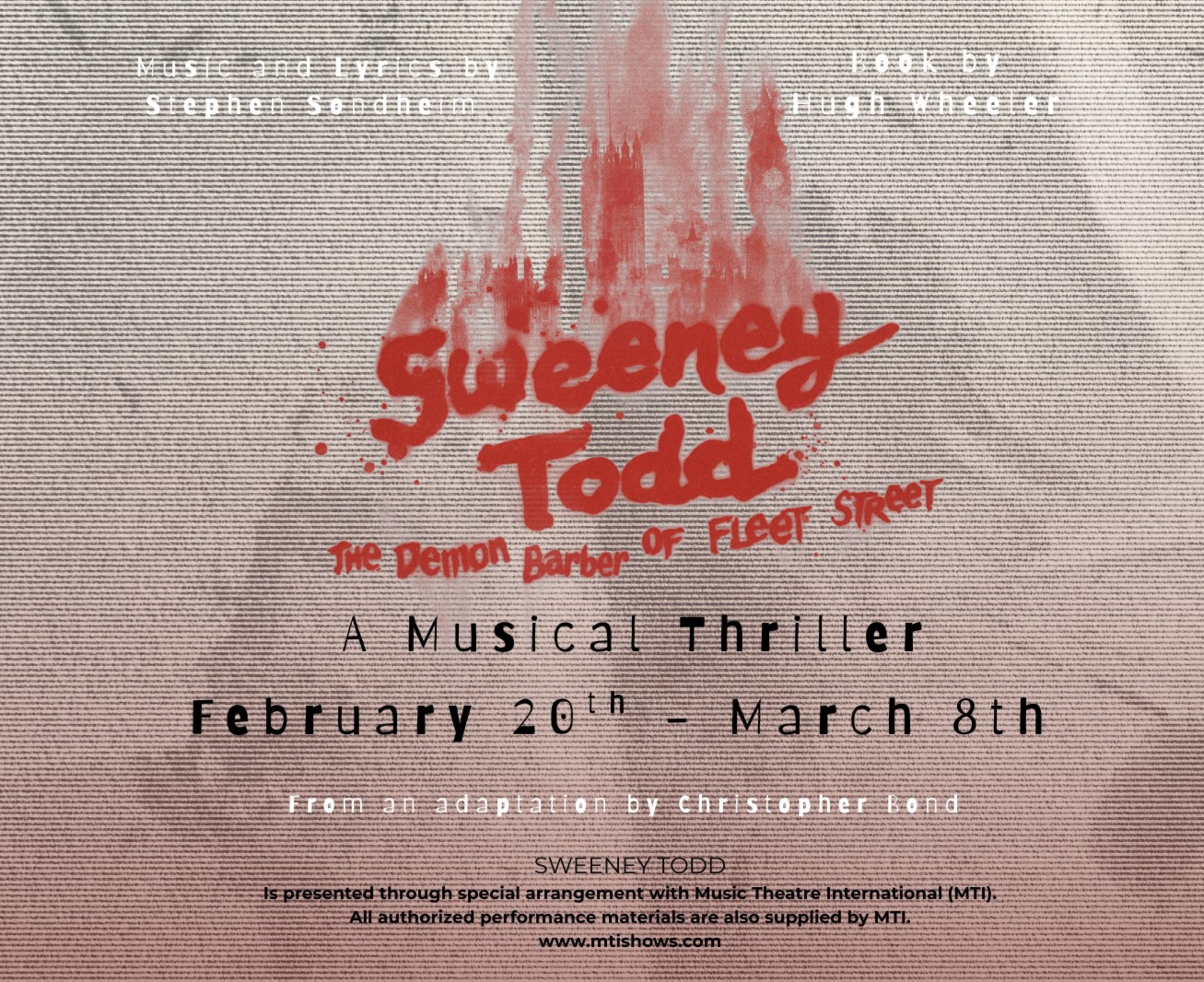 Sweeney Todd: The Demon Barber of Fleet Street Presented by Sullivan Theater Attend the thrilling musical masterpiece by Stephen Sondheim, a dark and gripping tale of obsession, revenge, and the price of vengeance, set in the shadowy streets of Victorian London. Run Dates: February 20 to March 8, 2026 Performance Schedule: • Thursday to Saturday evenings at 7:30 PM Doors open at 7:00 PM • Sunday matinees at 2:00 PM Doors open at 1:30 PM Tickets: Available at sullivantheater.com/tickets Adult Tickets: $35.00 Student Tickets: $25.00 Note: There is a $3.50 convenience fee when purchasing online Important Note: There are several scheduled understudy performances during the run. Please check the ticketing site for specific dates and casting details when purchasing tickets. Join us for an unforgettable theatrical experience filled with haunting music, powerful storytelling, and razor sharp drama.
